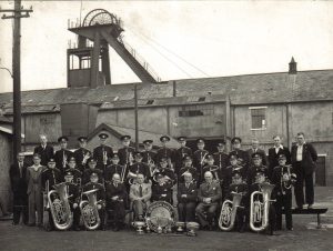 Crookhall Band in Delves Pit Yard – Maurice Hope in centre