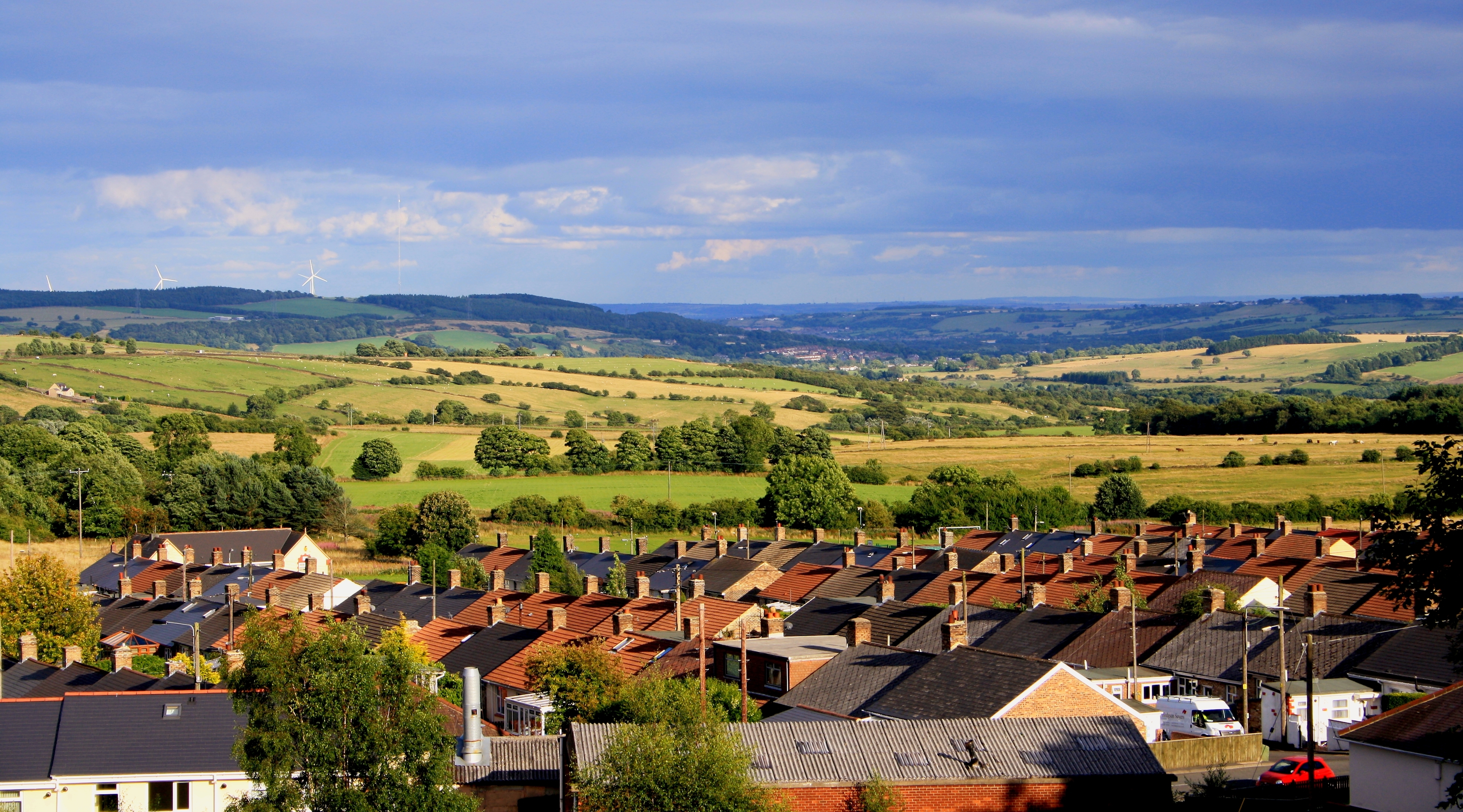 Crookhall Farm from top of ‘Crookhall Rocks’ – farm is on site of former Crook Hall